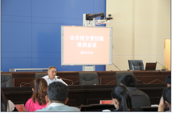 保山市校方責(zé)任保險(xiǎn)培訓(xùn)會(huì)議于2013年9月24日在保山市教育局大會(huì)議室召開(kāi)。各縣(區(qū))分管校方責(zé)任保險(xiǎn)工作局領(lǐng)導(dǎo)、負(fù)責(zé)校方責(zé)任保險(xiǎn)工作的業(yè)務(wù)人員、市直各校分管校方責(zé)任保險(xiǎn)工作校領(lǐng)導(dǎo)、負(fù)責(zé)校方責(zé)任保險(xiǎn)工作的業(yè)務(wù)人員、市教育局辦公室、安全科和基教科有關(guān)人參加了此次培訓(xùn)。我公司業(yè)務(wù)部、重點(diǎn)客戶部經(jīng)理參加會(huì)議,并做了培訓(xùn)。培訓(xùn)內(nèi)容包括:自然災(zāi)害應(yīng)急處理能力培訓(xùn)、學(xué)校安全事故案例分析、學(xué)校食品安全監(jiān)管培訓(xùn)、校方責(zé)任保險(xiǎn)工作介紹及投保、理賠工作流程。