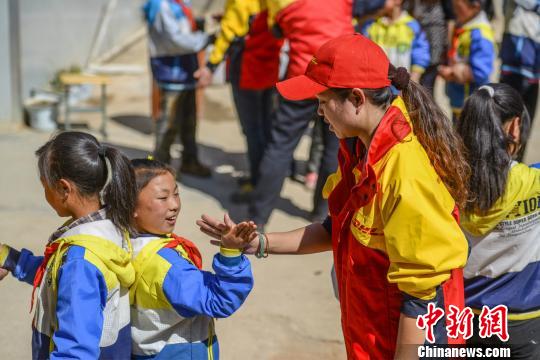 鵲落小學(xué)的學(xué)生和志愿者一起體驗"加油計劃"課程