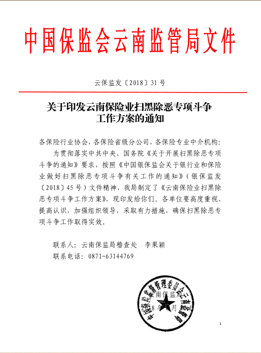 關于印發(fā)云南保險業(yè)掃黑除惡專項斗爭工作方案的通知